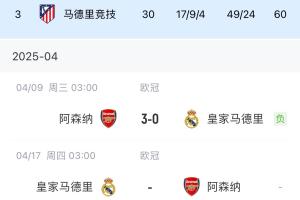 体育资讯04月09日讯 皇马欧冠1/4决赛首回合0-3落后阿森纳,下周移师伯纳乌进行。 虽然皇马15次获得过欧冠冠军、36次获得西甲冠军、20次拿到过国王杯冠军,但队史123年仍未同时获得过西甲+欧冠+国王杯“三冠王”。 目前皇马西甲落后榜首4分,欧冠1/4决赛遭遇枪手阻击,国王杯决赛还要与巴萨争冠...